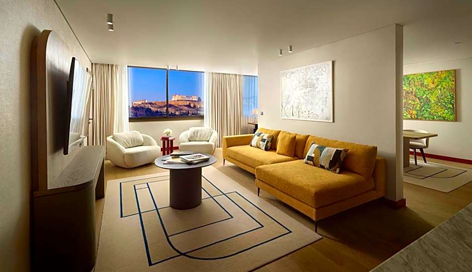 This 115 ft² room is stylishly furnished, offering view to the Acropolis, with a sitting area, fully fitted bathroom including luxury amenities, iron and ironing board.